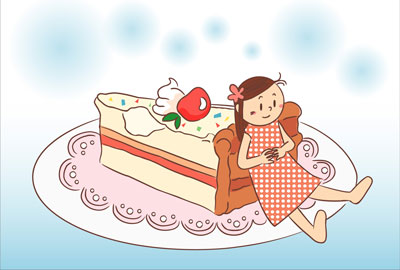 ケーキを食べようと思って、戸棚から出そうとしたら、小人さんがお皿の上に…